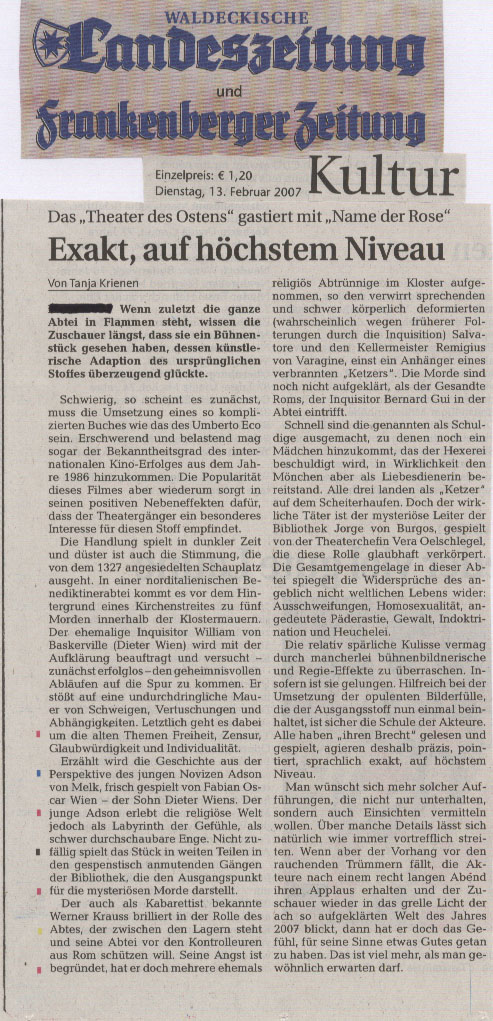 Tanja Krienen: "Der Name der Rose" wurde ja zunächst durch das Buch,